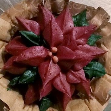 Our triple rosette design with leaves in buttercream icing with your choice of cake flavor and icing flavor/color. Please leave your choices in the notes section.